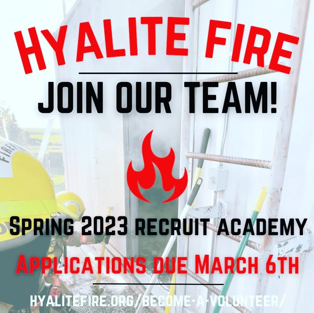 Visit hyalitefire.org/become-a-volunteer/ to get your application and for information on minimum requirements. Please email recruit@hyalitefire.org with any questions.